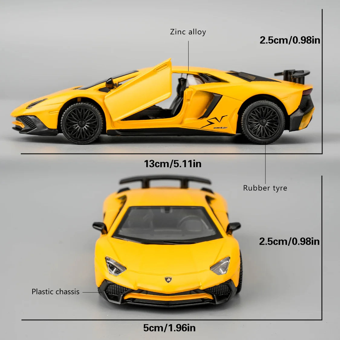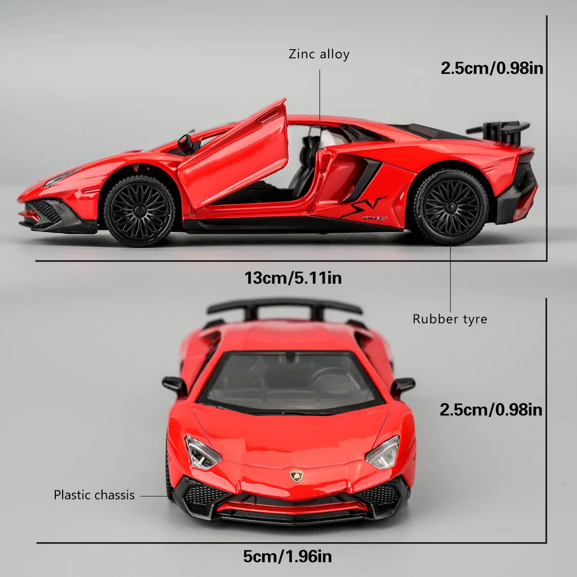 1:36 Lamborghini Aventador Toy Car, Diecast Pull Back Model Car, Doors Open, Collection Kids Toy for Aged 3 and up, Gift Red