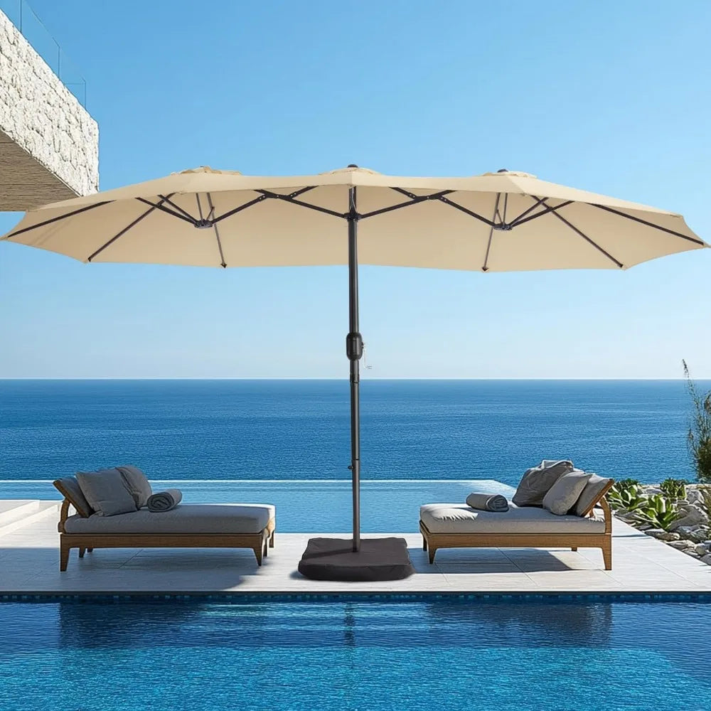15ft Large Patio Umbrella with Base Included - Outdoor Double-Sided Umbrella with Crank Handle - Powerful UV Protective, for Poo