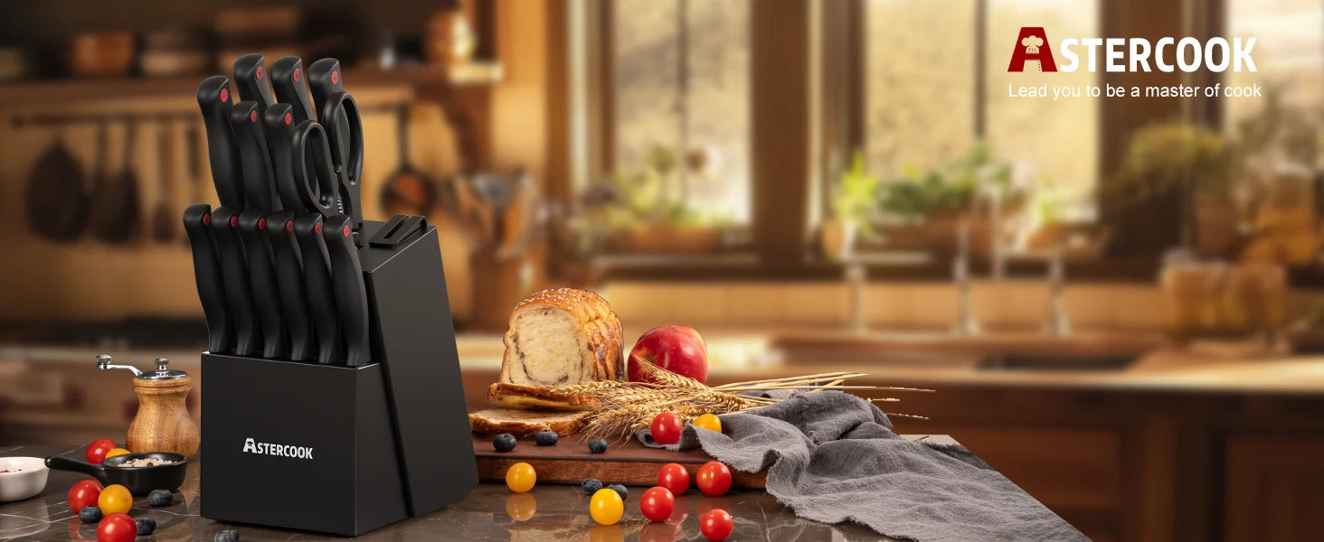 15PCS Astercook Knife Set - Built In Sharpener Block - German Stainless Steel - Dishwasher Safe
