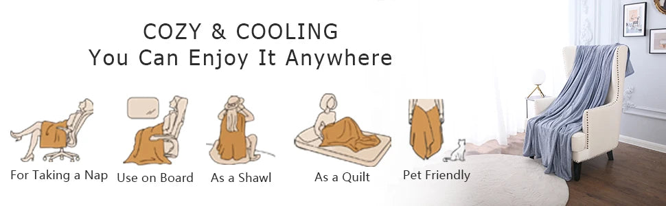 【Easy Care & Durable】Thanks to high-strength weaves and high-quality fabrics, this hot sleeper blanket is machine and hand washable. No fading, shrinkage and pilling. We recommend using a mild detergent and placing it in a laundry bag to prevent tangling and damage. Washing and maintenance instructions: 30°C light washing, do not bleach, do not iron, do not dry clean, dry clean, dry in a cool place.