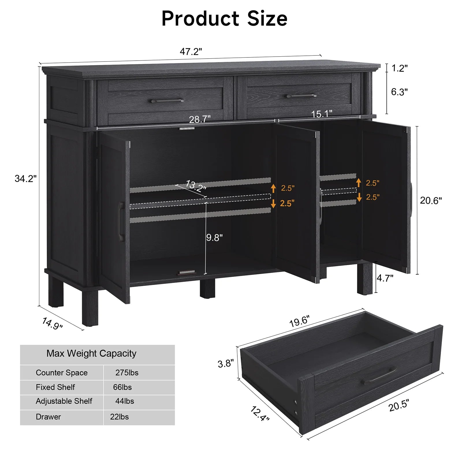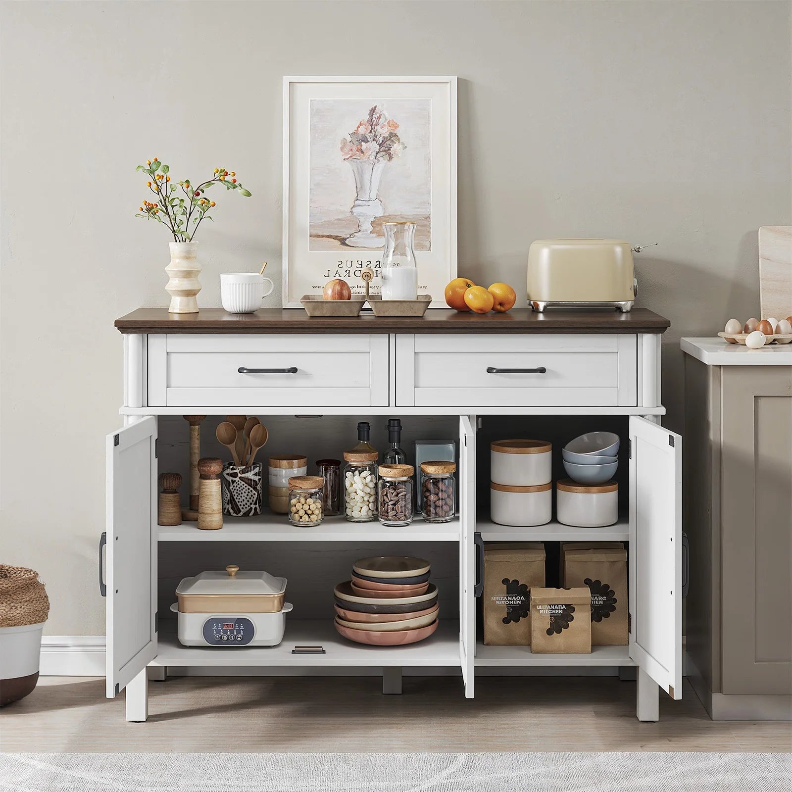 48" Storage Buffet Cabinet - 2 Drawers & Doors, Adjustable Shelve, Wooden Kitchen. Living Room & Hallway Cabinet