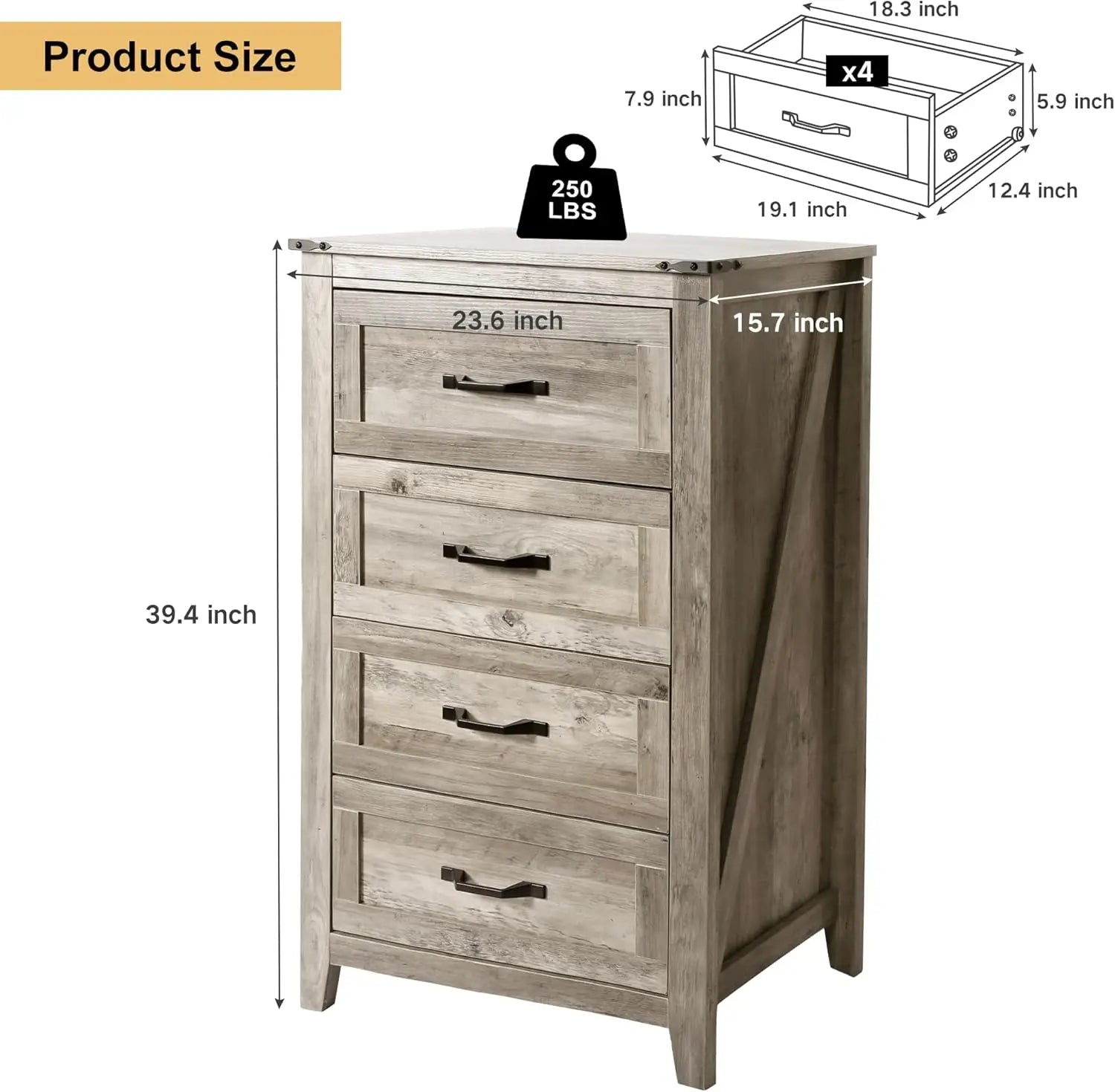 4PCS Farmhouse Dresser Set - Dresser, Chest Of Drawers and Nightstand Sets - Rustic Wooden Dresser Set