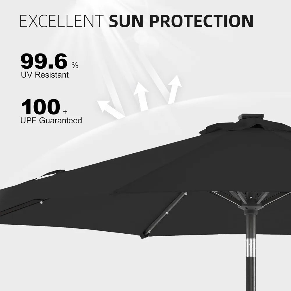 9ft Solar Led Patio Umbrella - Sturdy Outdoor Market Umbrella for Deck, Pool, Garden w/Tilt, Crank, 32 LED Lights, Carbon Grey