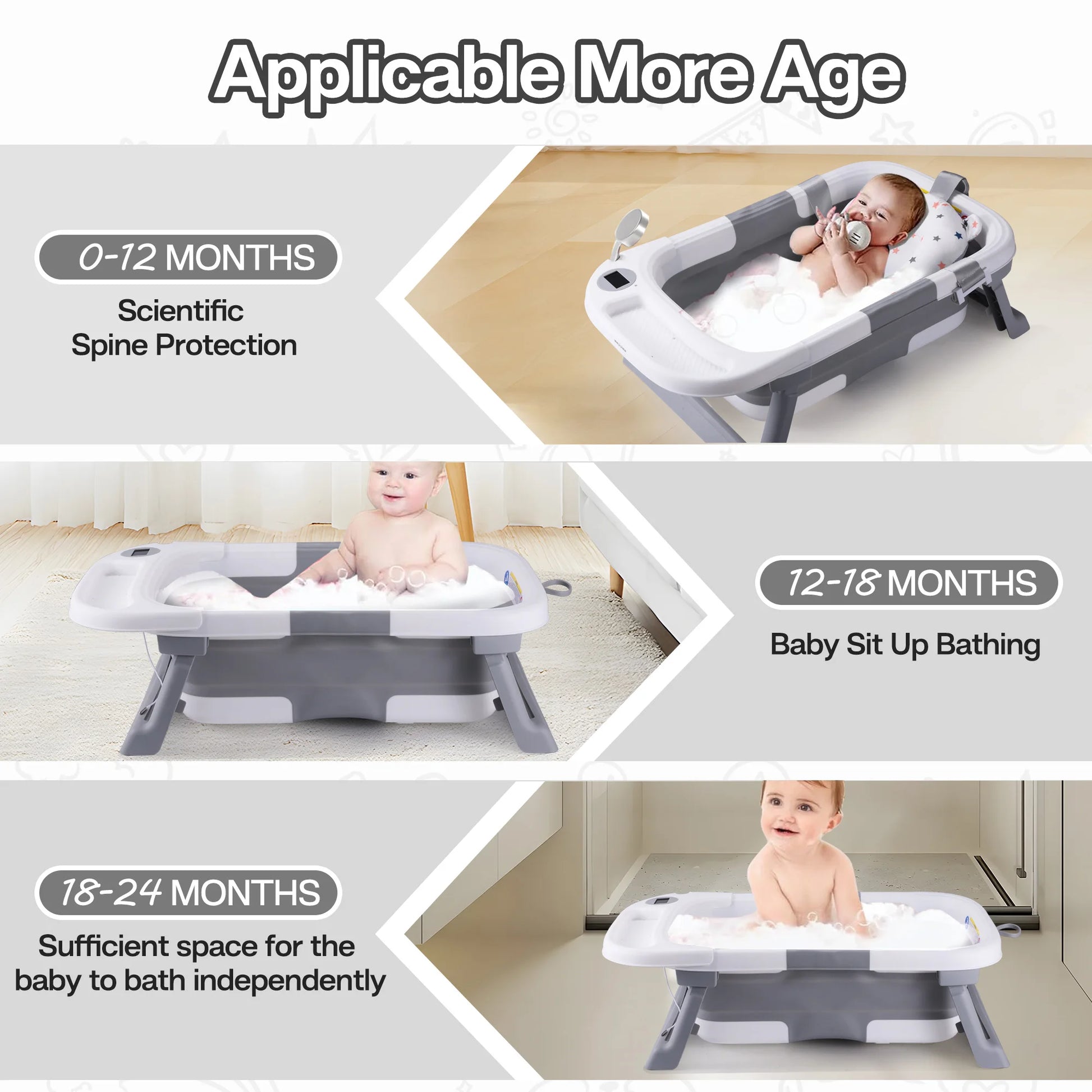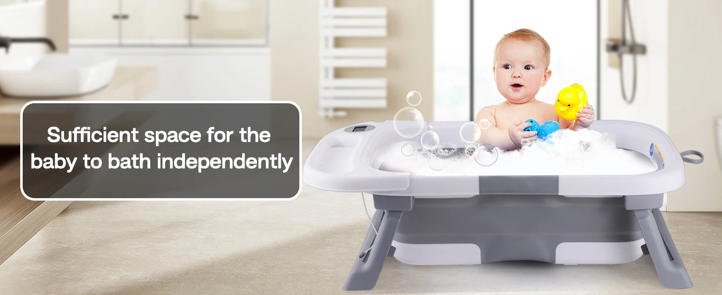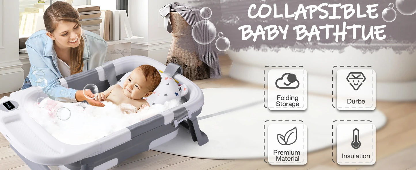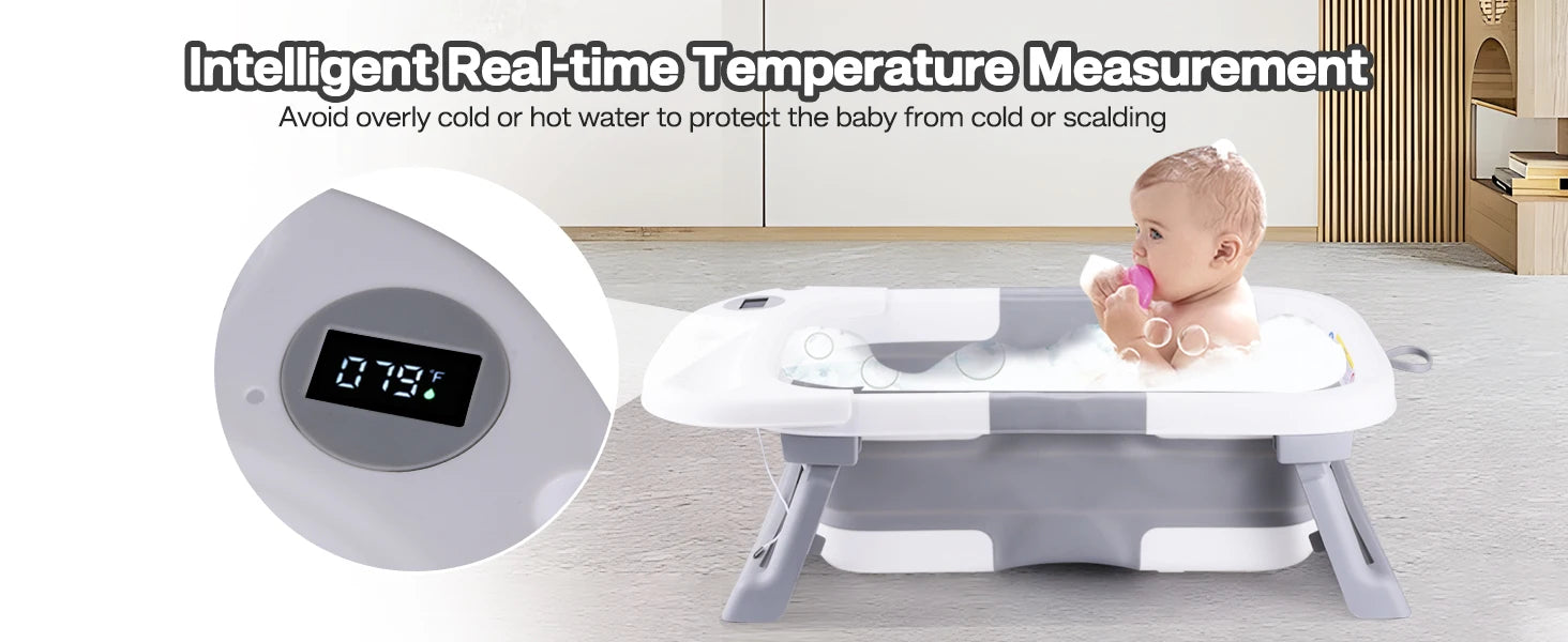 Baby Bath Tub with Soft Cushion & Thermometer 0-36 Months, Portable For Travel