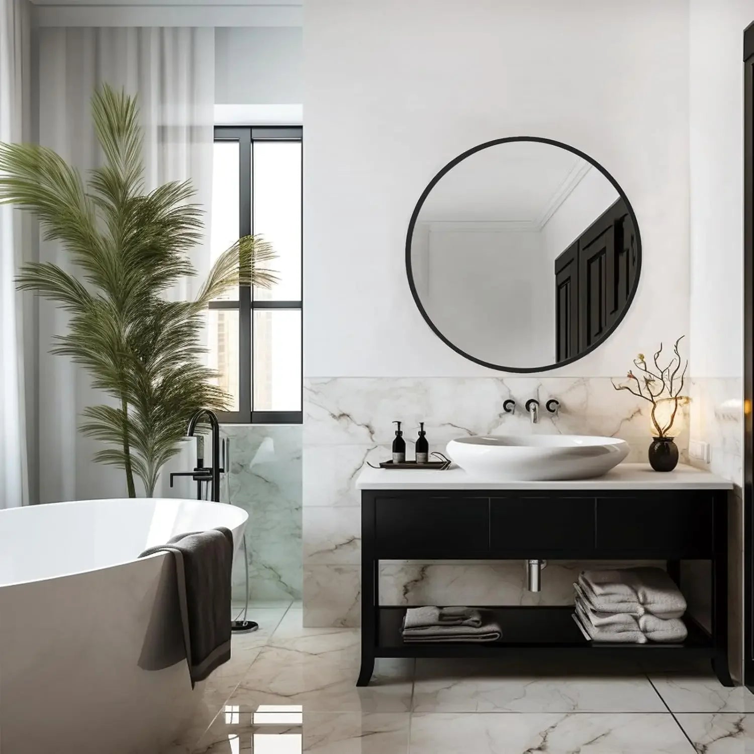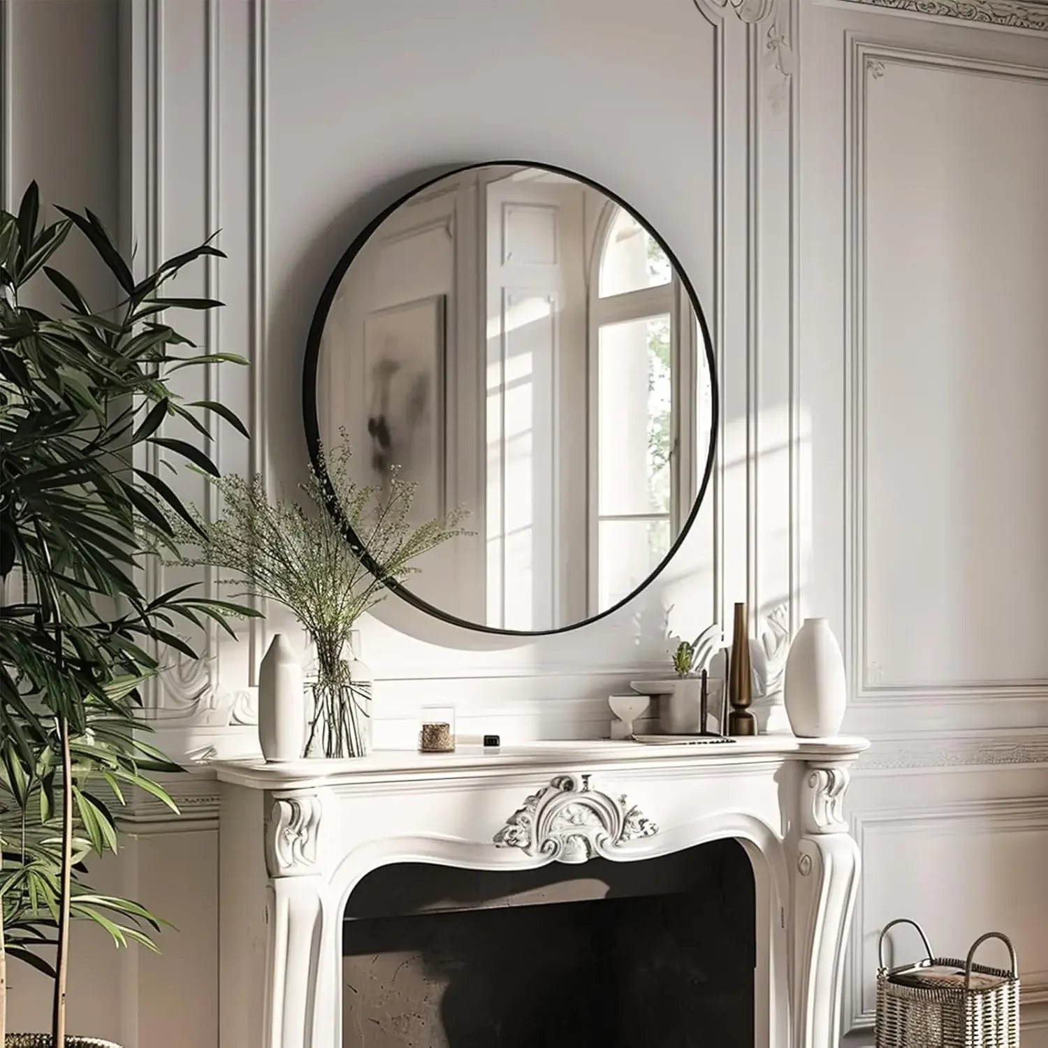 Black Round Mirror - 24''W x 24''L - Shatter Proof - Comes With Accessories To Hang Mirror Up - SHIPPED ONLY IN THE USA