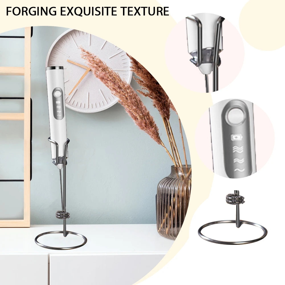 Wireless Frother - Comes W/Stand (Optional) - 3 Attachments - Stir, Blender, Whisk, Froth & Beat Ingredients - Charging Cable - SHIPS IN THE USA