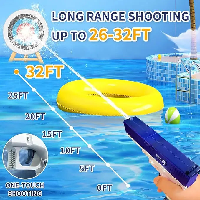 The Water Gun That Blasts From 26'-32' - Continuous Spraying Power - 15 Seconds To Fill Up - Rechargeable Electric Device - Waterproof Battery Area - Fun For Kids OR Adults - Pool Or Beach Partys - Let Summer Begin - Age 3yrs To 15yrs & Adults - SHIPPED IN THE USA