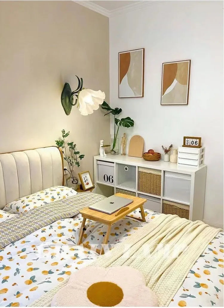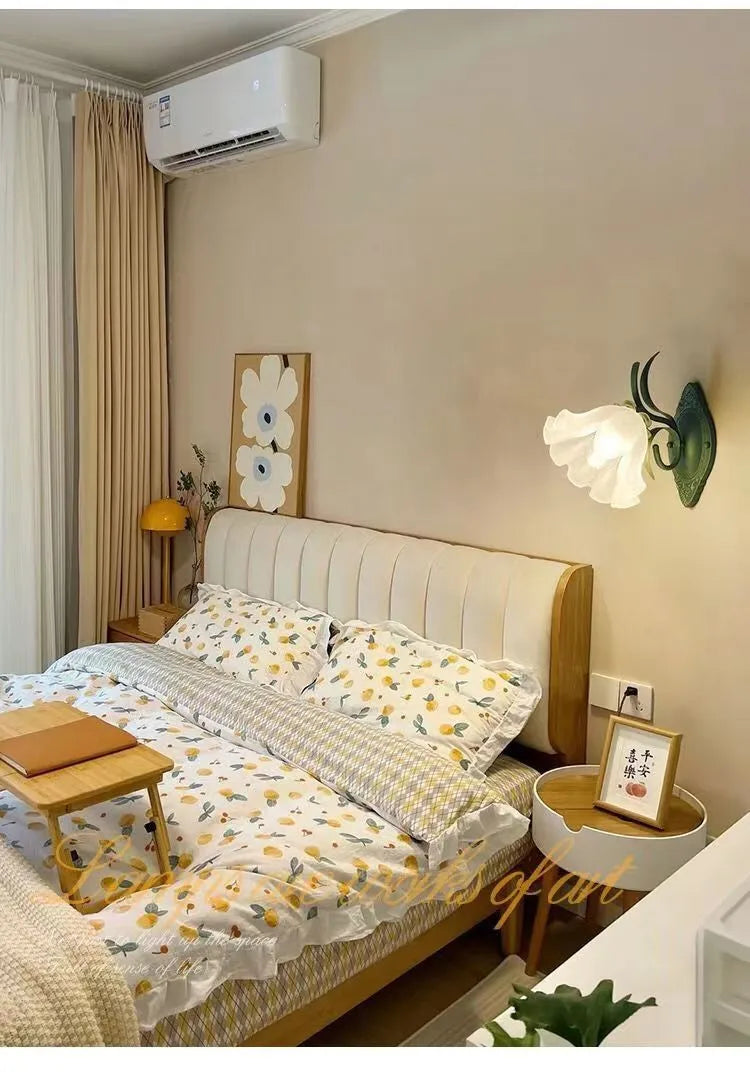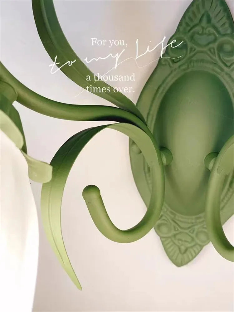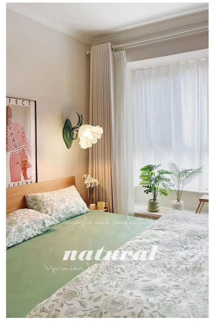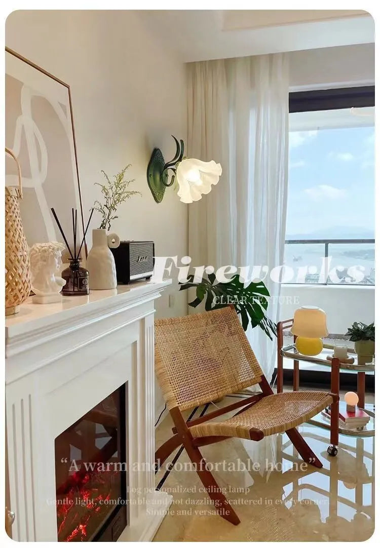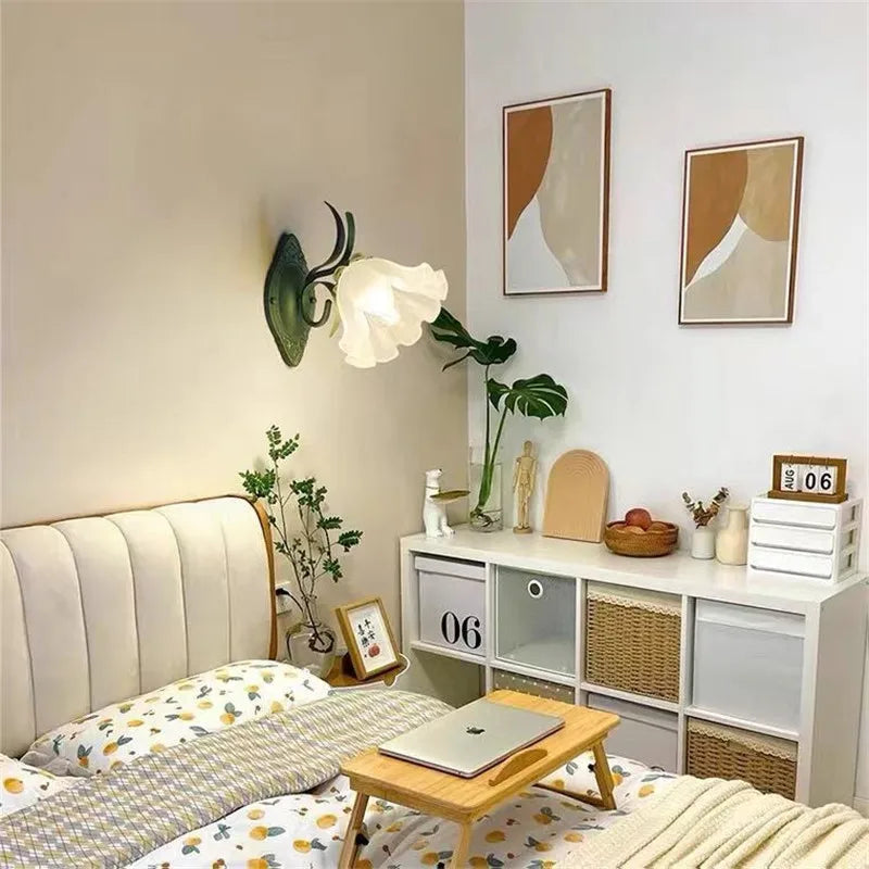 French Flower Wall Light Sconce - Moves Up & Down - Iron Base & Frosted Glass - Indoor Decoration