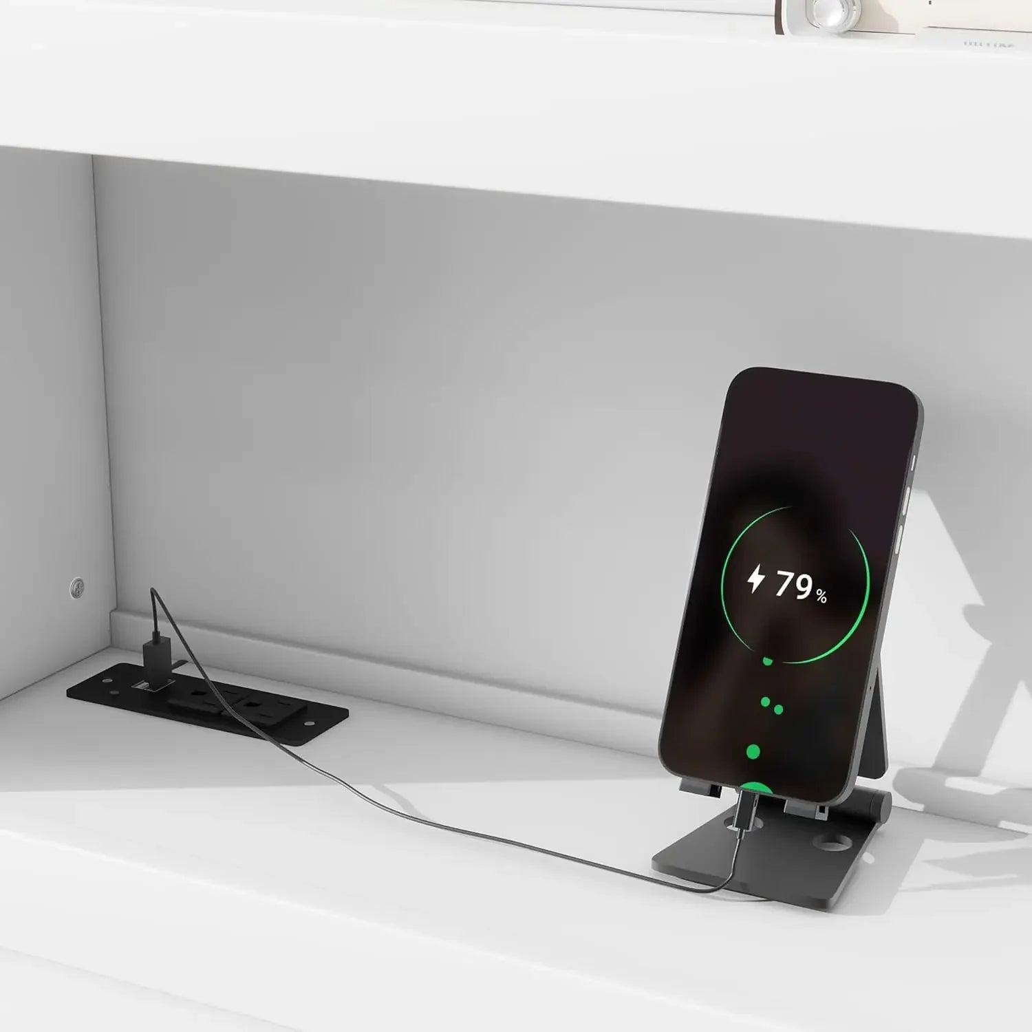 - [Full Bed with Storage Headboard & Charging Station] - Featuring a headboard with built-in shelves for arranging books or something else. This type of bed allow you access your need as soon as they wake up or right before they fall asleep. Storage Headboard with built-in 2 ports and 2 plugs can be fully used to charge your electronic products.