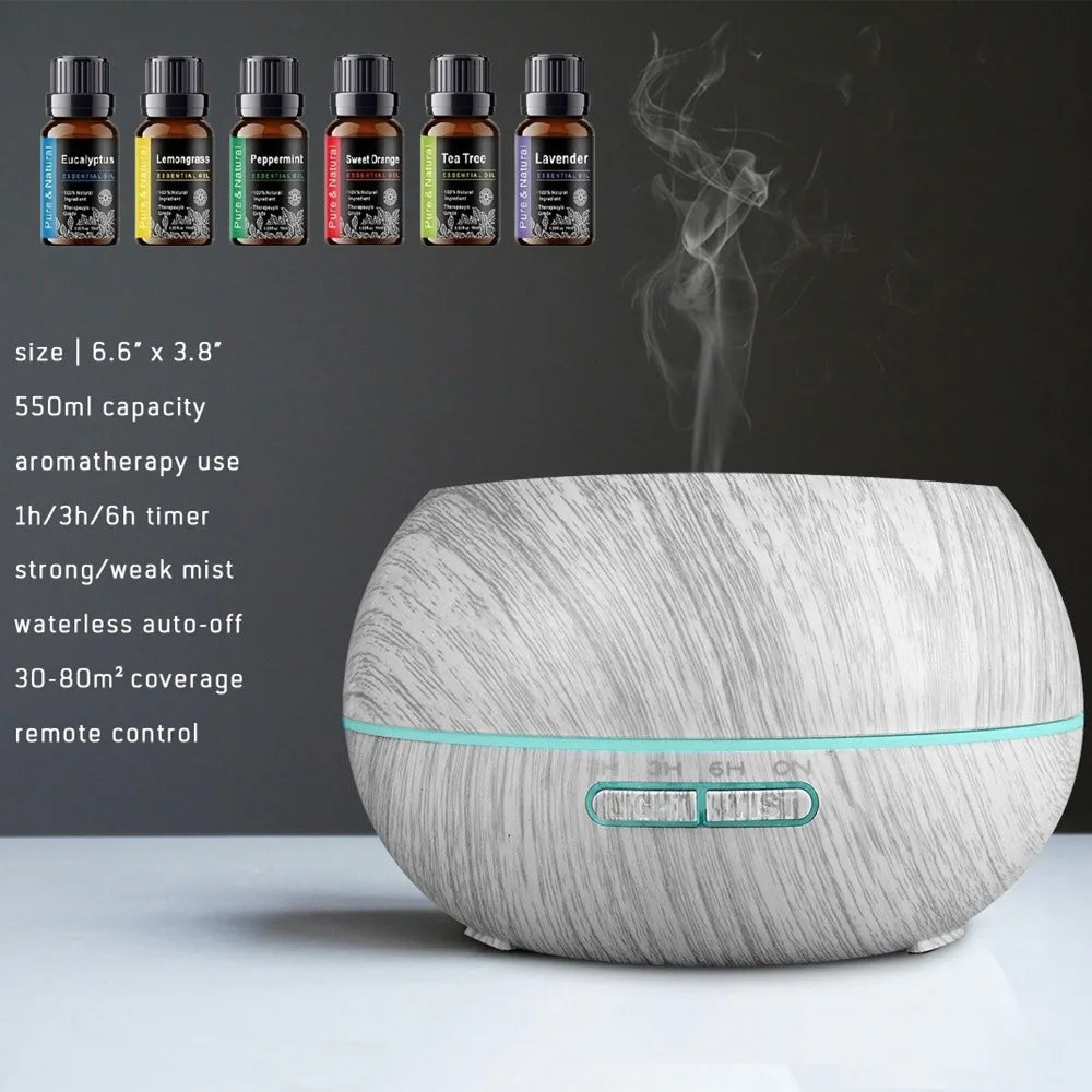 Gift of Wellness Premium Wood Diffuser Set w/6 Essential Oils & Remote - Perfect Housewarming Gift