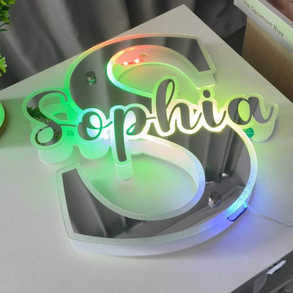 Personalized Name & Letter Mirror Light - 12 Color LED Illumination - For Any Occasion