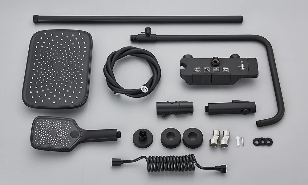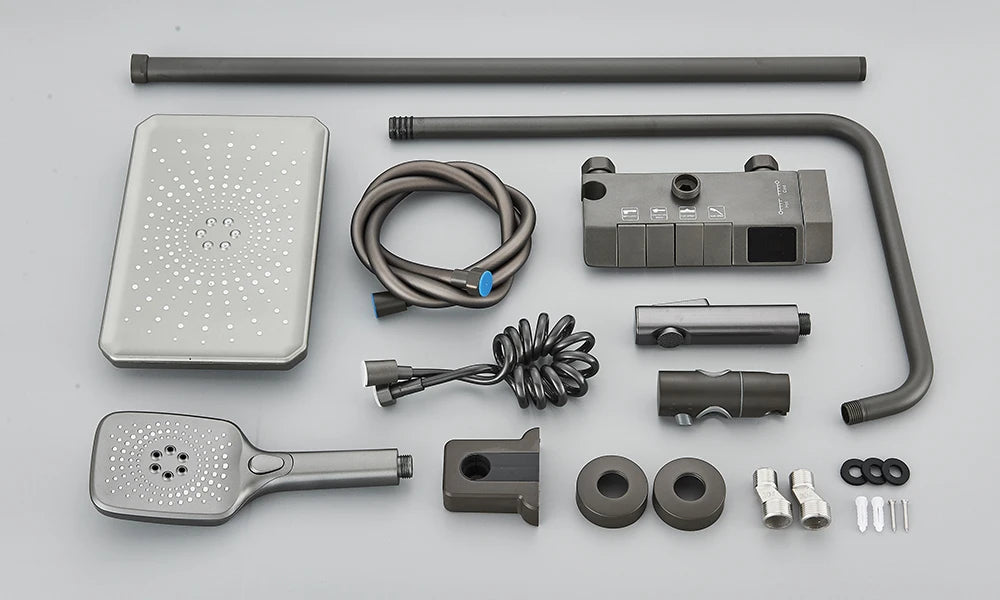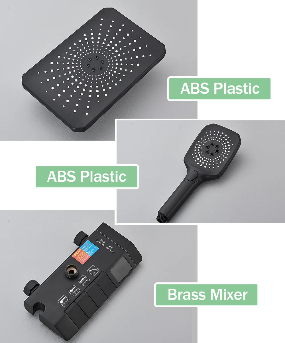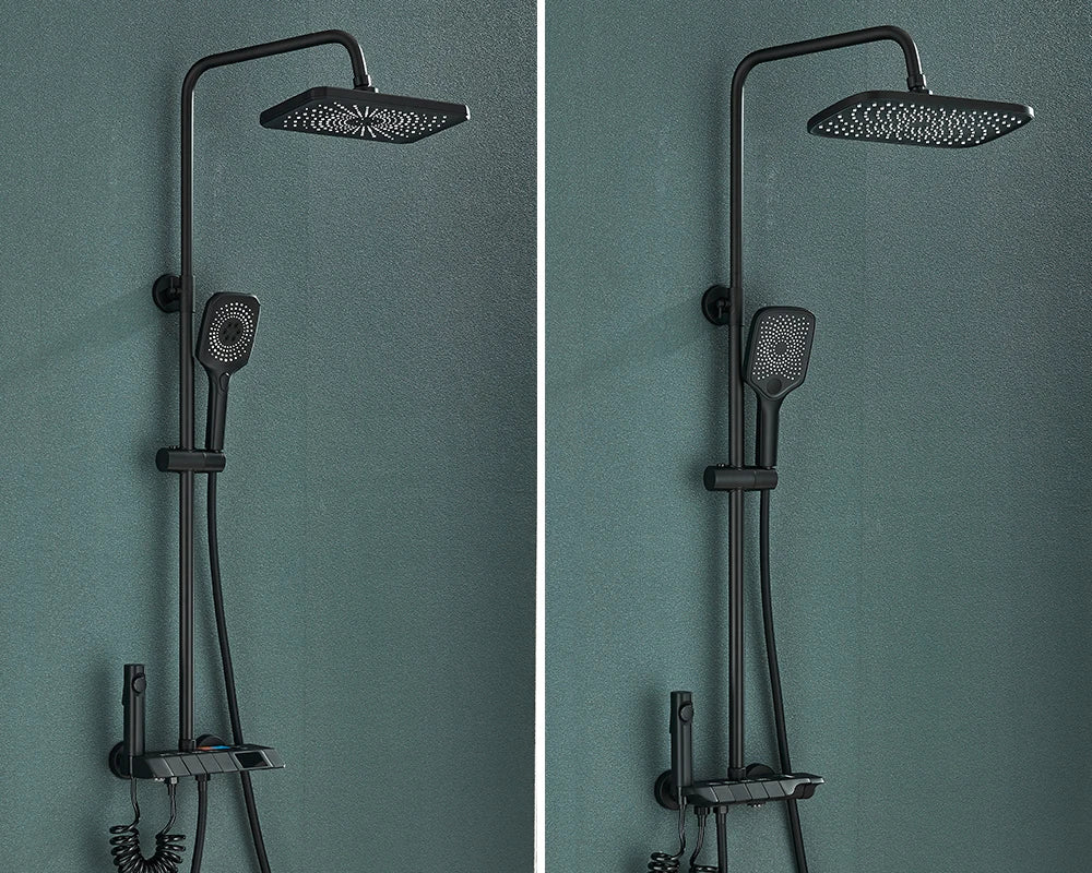 Rozin Black Smart Digital Display Shower Faucet Set - Piano Style Rainfall Bathroom System - Grey Digital Mixer Tap & Bidet Shower