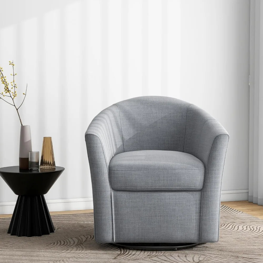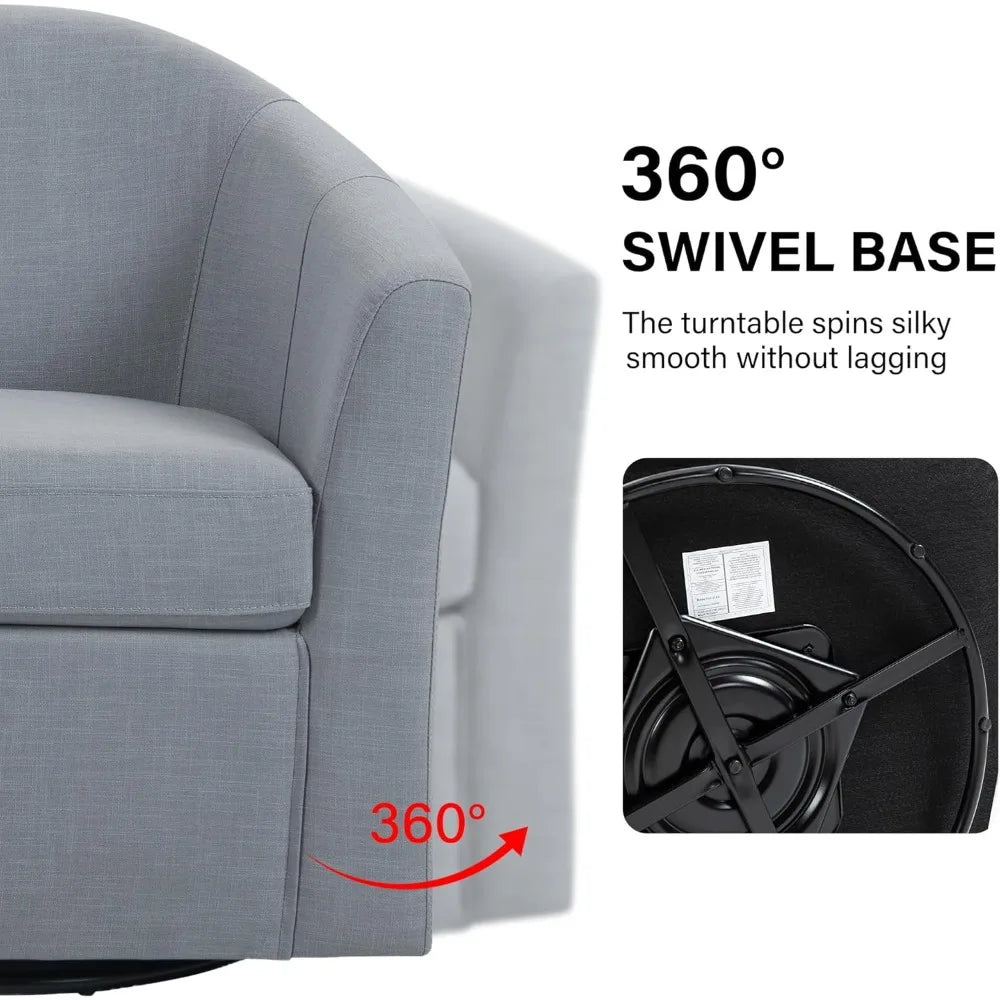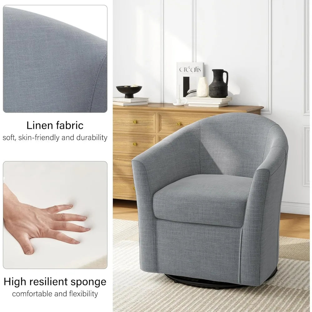 Swivel Accent Armchair - Modern Round Single Sofa Seating Comfy Reading Barrel Chairs - For Living Room, Bedroom or Office