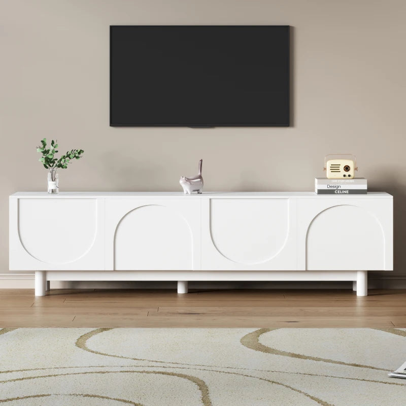 TV Stand w/Arched Cabinates & Adjustable Shelves, Solid Wooden Legs & Fits Up to 78" TV's
