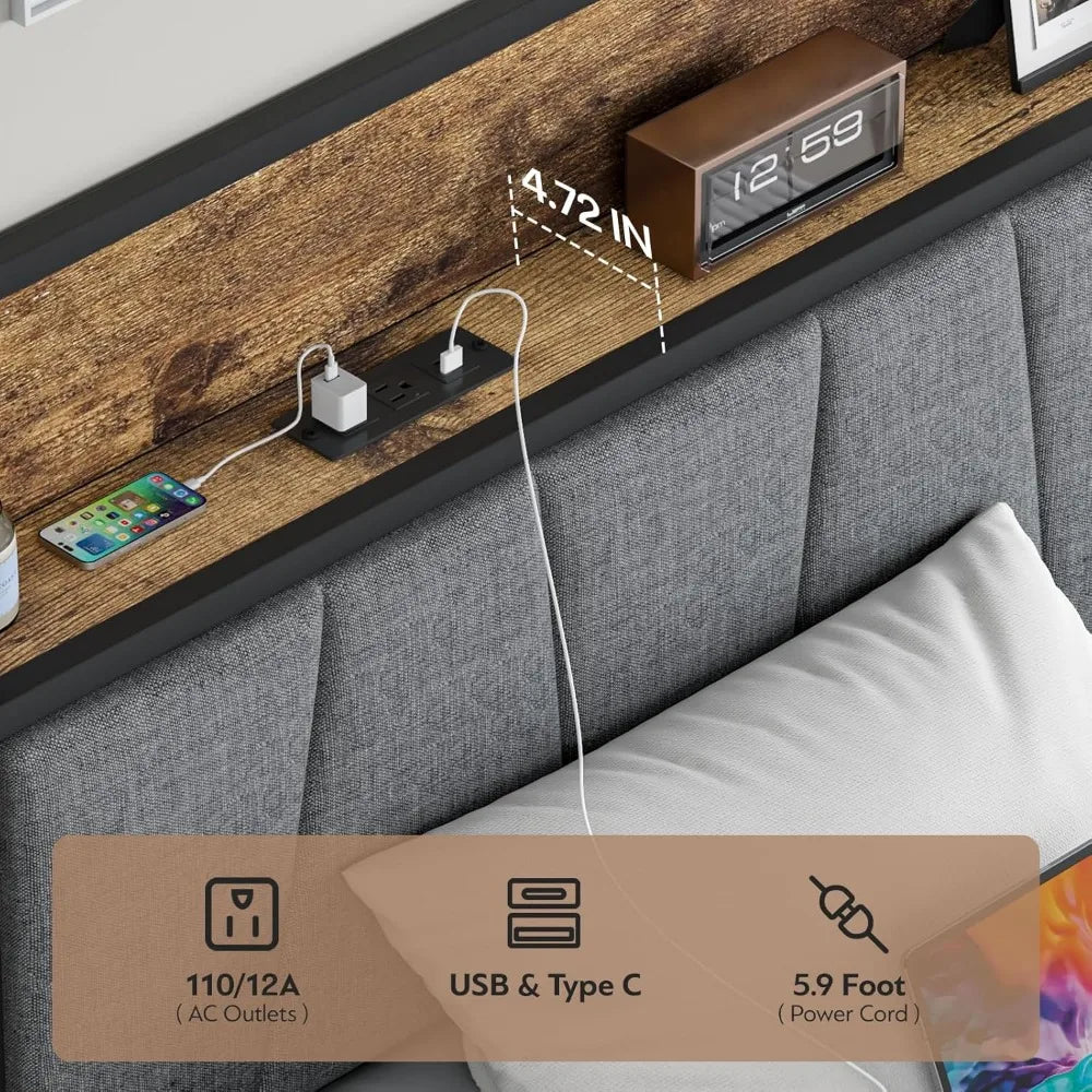 - HEADBOARD WITH STORAGE SHELF & CHARGING STATION - The bed headboard is built-in with 2 outlets, USB, and 1 Type-C charging port. Convenient for you to place iPhone/Android and other devices on it. The twin bed frame with a storage shelf helps you easy to find your phone, turn off the alarm clock, and get stuff you need while enjoyably lying on the bed.